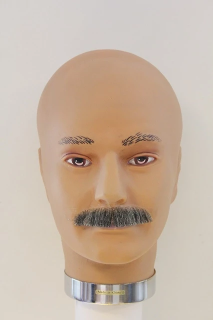 Deze grijze rechte nep snor is gemaakt van echt haar en geknoopt op film tule. Deze plaksnorren dienen geplakt te worden met mastiek (huidlijm) en hebben dan een heel realistisch effect. Uiteraard kunnen dit soort nepsnorren veel vaker gebruikt worden.