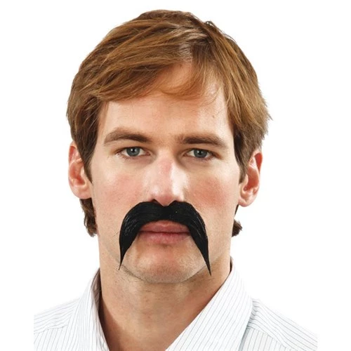 Grappige hangende zwarte kunstsnor inclusief dubbelzijdig plak stickertje. Voor echt een avond lang plezier raden wij aan om de nepsnor te plakken met een speciale huidlijm. Te vinden onder de noemer mastiek.