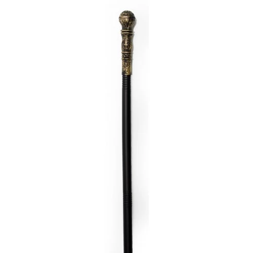 Zwarte plastic pimpstok met een gouden knop. De stok heeft een lengte van 80cm en is in 3 delen uit elkaar te halen voor makkelijk vervoer.