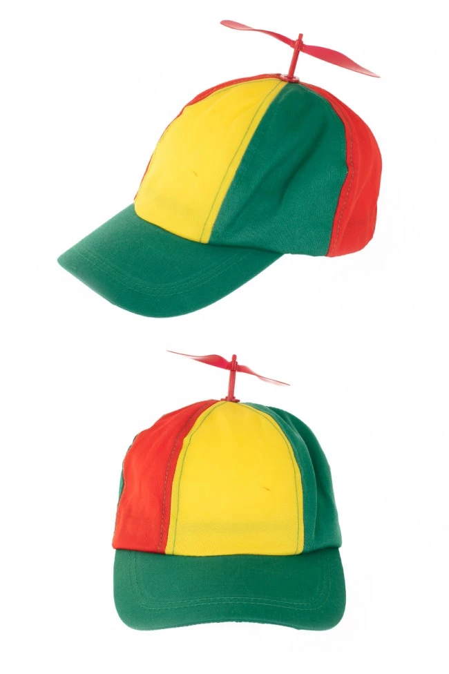 Een leuke pet met een propeller in het geel, groen en rood. Geheel verstelbaar voor elke maat geschikt.