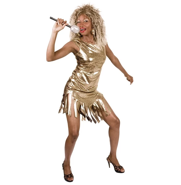 Gouden jurkje met een luipaarden printje. Te gek voor een fout 80ties feest, maar perfect voor een Tina Turner imitatie. Leuk dus voor een jaren 80 feest. Het jurkje is one size, maat medium. Passend voor maat 36 en 38.