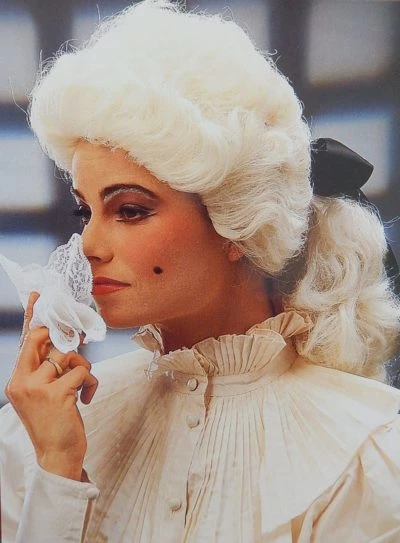 Zeer luxe rococo pruik voor dames en een eierschaal kleur. Heel chique, prachtig gekapt met volle staart aan de achterzijde. Duitse makelij.