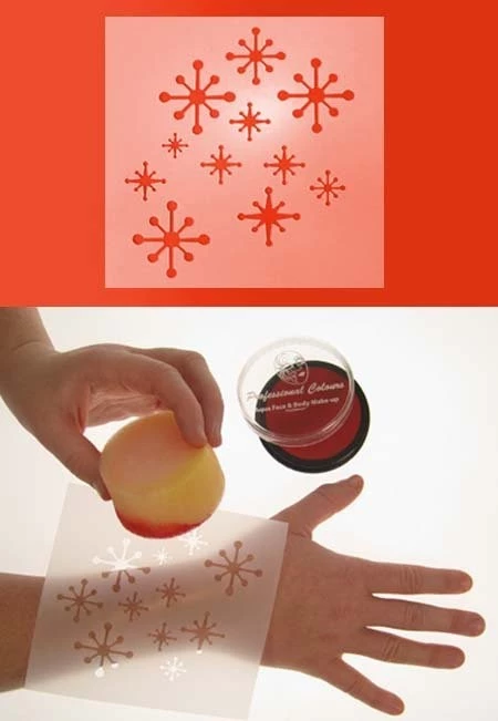 Plastic herbruikbraar sjabloon om leuke schmink effecten mee te creë:ren. Tamponeer met je sponsje op het sjabloon en je houdt een prachtige afbeelding over.