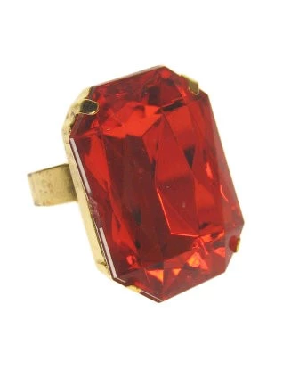 Klassieke vierkante Sinterklaas ring met donkerkleurige rode steen, in facet geslepen. Het montuur van de Sint ring is verstelbaar, dus hij past altijd. Formaat 25 mm x 18 mm en geheel van metaal.