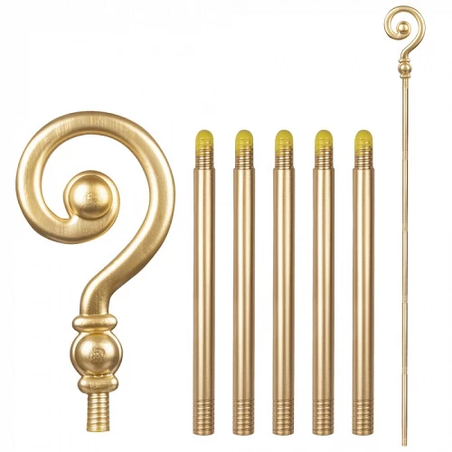 Plastic gouden Sint staf die uit 6 delen bestaat. In elkaar gezet is de Sinterklaasstaf 185cm groot.