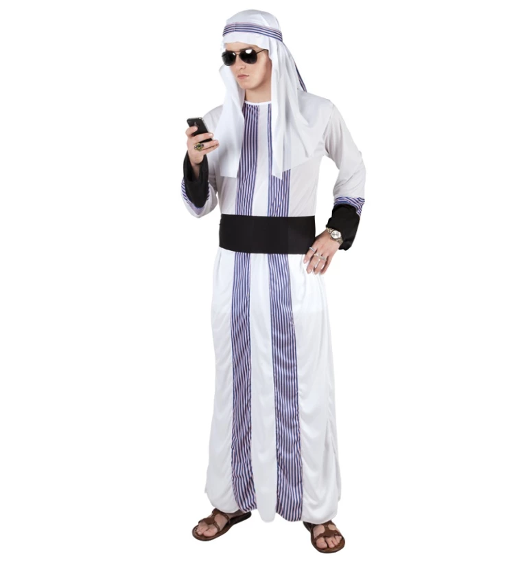 Wit gewaad of toga van een sheik. Inclusief hoofddoek. Dit sjeik pak is one size en valt ongeveer als een M/L.