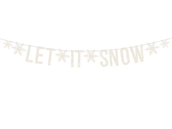 Parelmoer witte glitterende slinger met de tekst Let is snow. 13x170cm groot.
