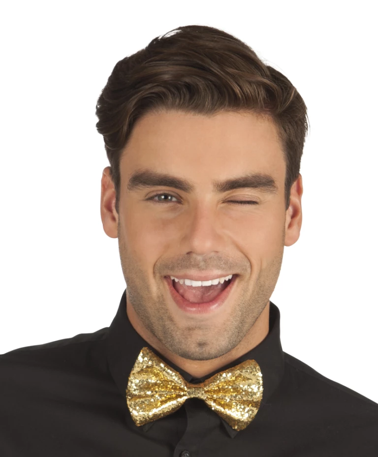 Sprankelende glitter gouden vlinderdas die met een elastiekje is om te doen.