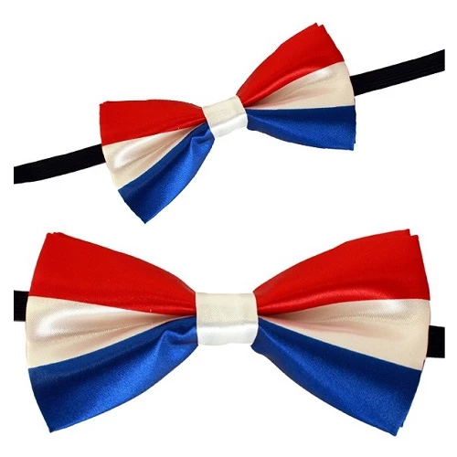 Mooi satijnen strikje met de kleuren van de Nederlandse vlag. Het bandje is verstelbaar, dus hij is altijd passend te maken.