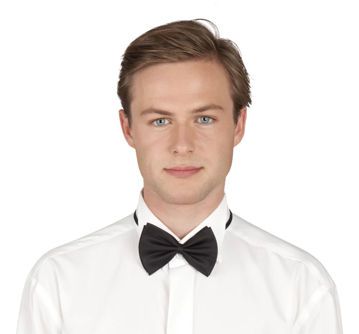 Zwart strikje dat om te doen is door middel van een elastiek. Deze zwarte strik is gemaakt van stof en ziet er voor deze prijs verrassend mooi uit!