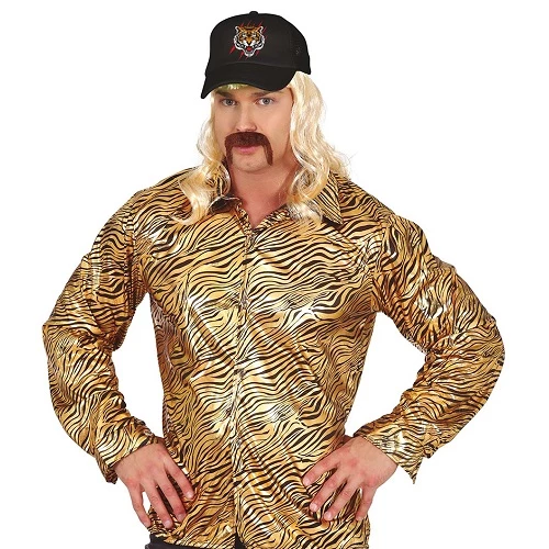 Vreselijk fout en lelijk gouden shirt met een zwarte tijgerprint. Inclusief pet. De Tigerking blouse is verkrijgbaar in twee herenmaten: