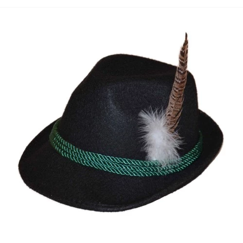 Mooi vilten hoedje voor Het Oktoberfest of een Duits bierfeest. Is weer eens wat anders dan de standaard groene of grijze Tirol jagershoedjes. One size, ongeveer hoofdmaat 58/59.