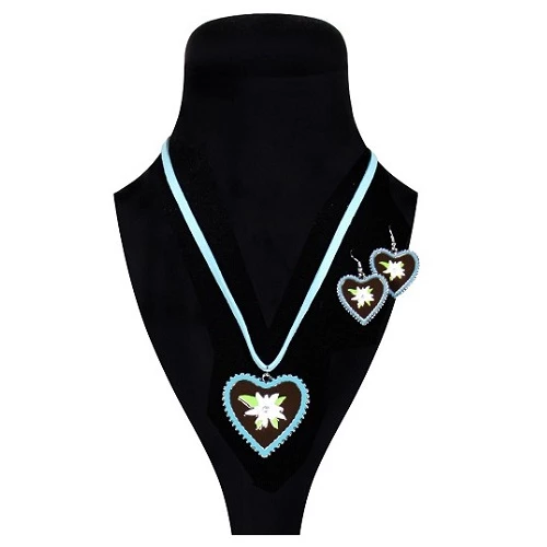 2076-1500 Dirndl Oktoberfest ketting set Edelweiss turquoise