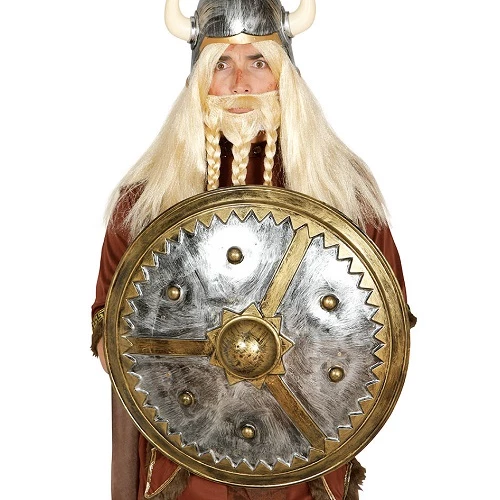 Plastic schild voor een Viking van 61cm doorsnee. Je houdt het schild vast door middel van twee stoffen lussen die aan de achterkant van het schild zitten. Door één lus steek je je arm en aan de andere lus houd je hem vast.