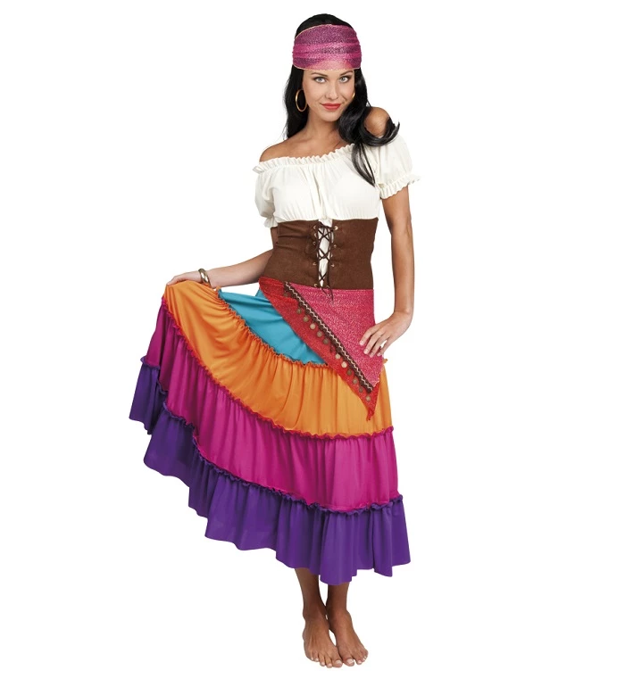 Zigeuner kostuum dat bestaat uit de jurk, riem en bandana.